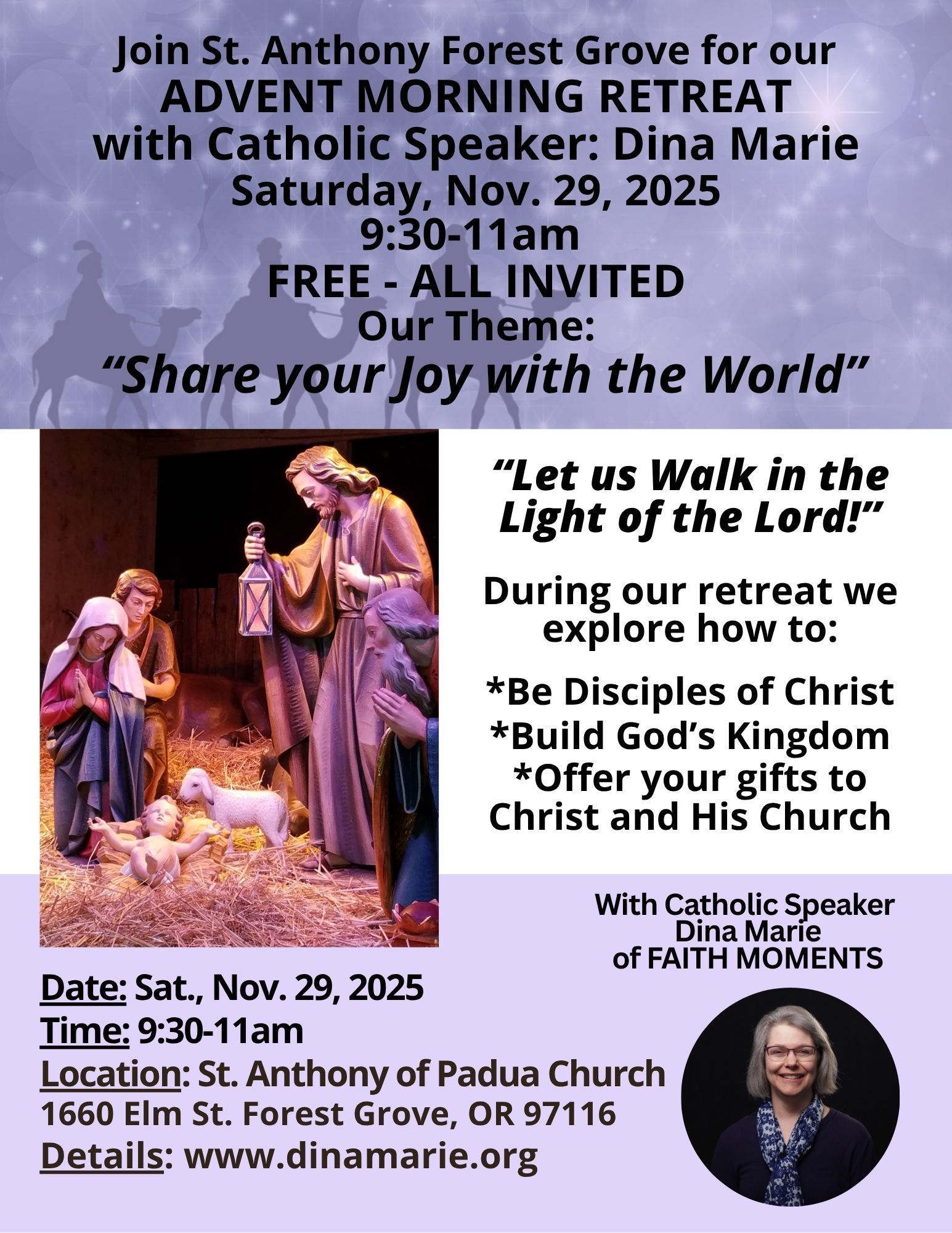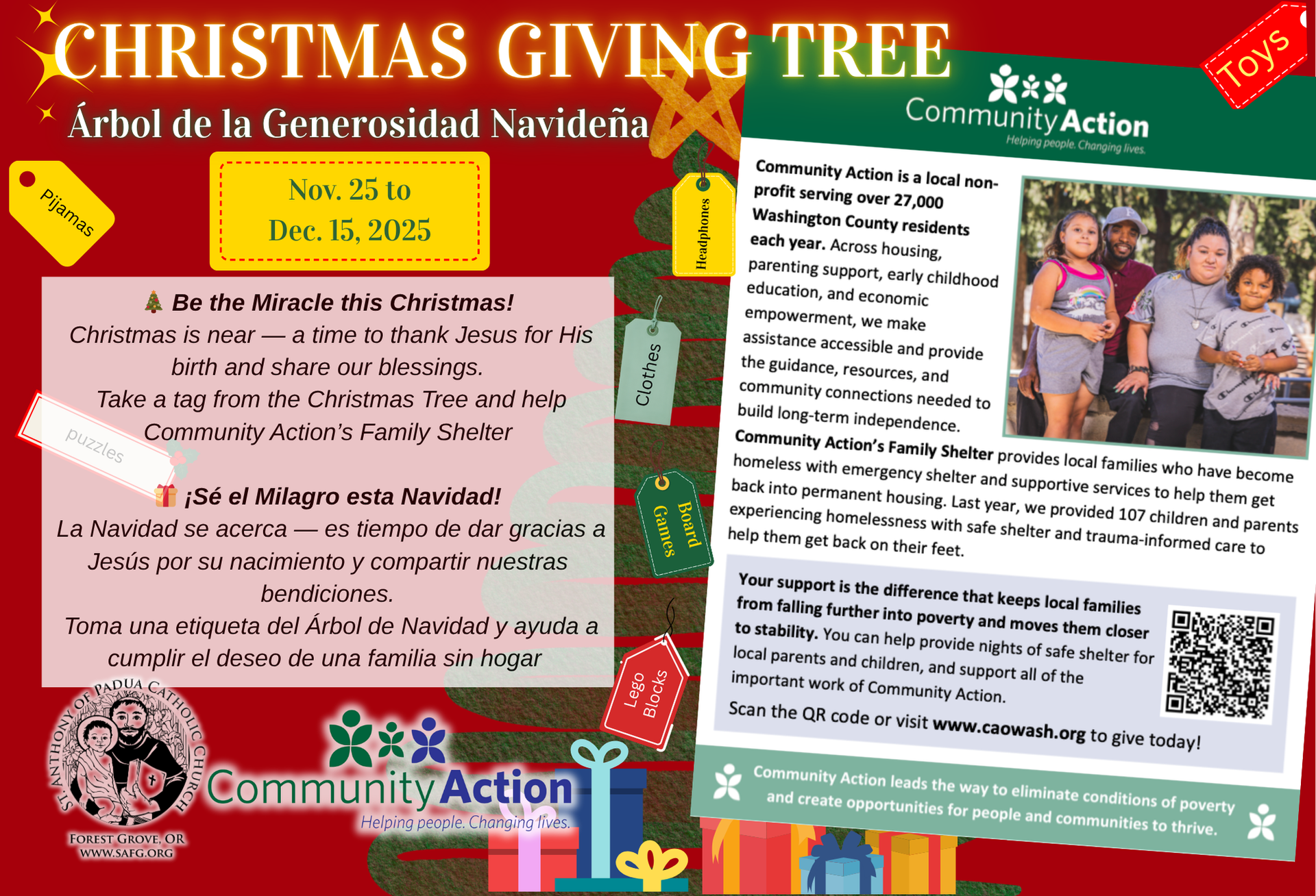 Nosotros, la Familia Católica de San Antonio de Padua, estamos llamados a amar a Dios, amar a nuestro prójimo y hacer discípulos de todas las personas compartiendo los dones que Dios nos ha dado.