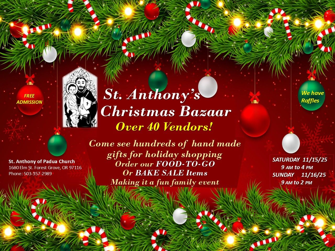 We, the Catholic Family of St. Anthony of Padua, are called to love God, love our neighbor, and make disciples of all people by sharing the gifts God has given us.