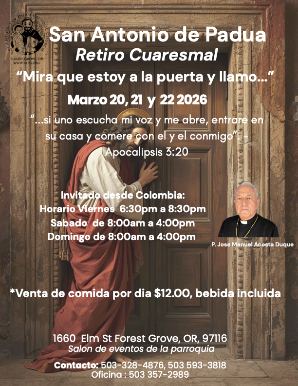 We, the Catholic Family of St. Anthony of Padua, are called to love God, love our neighbor, and make disciples of all people by sharing the gifts God has given us.