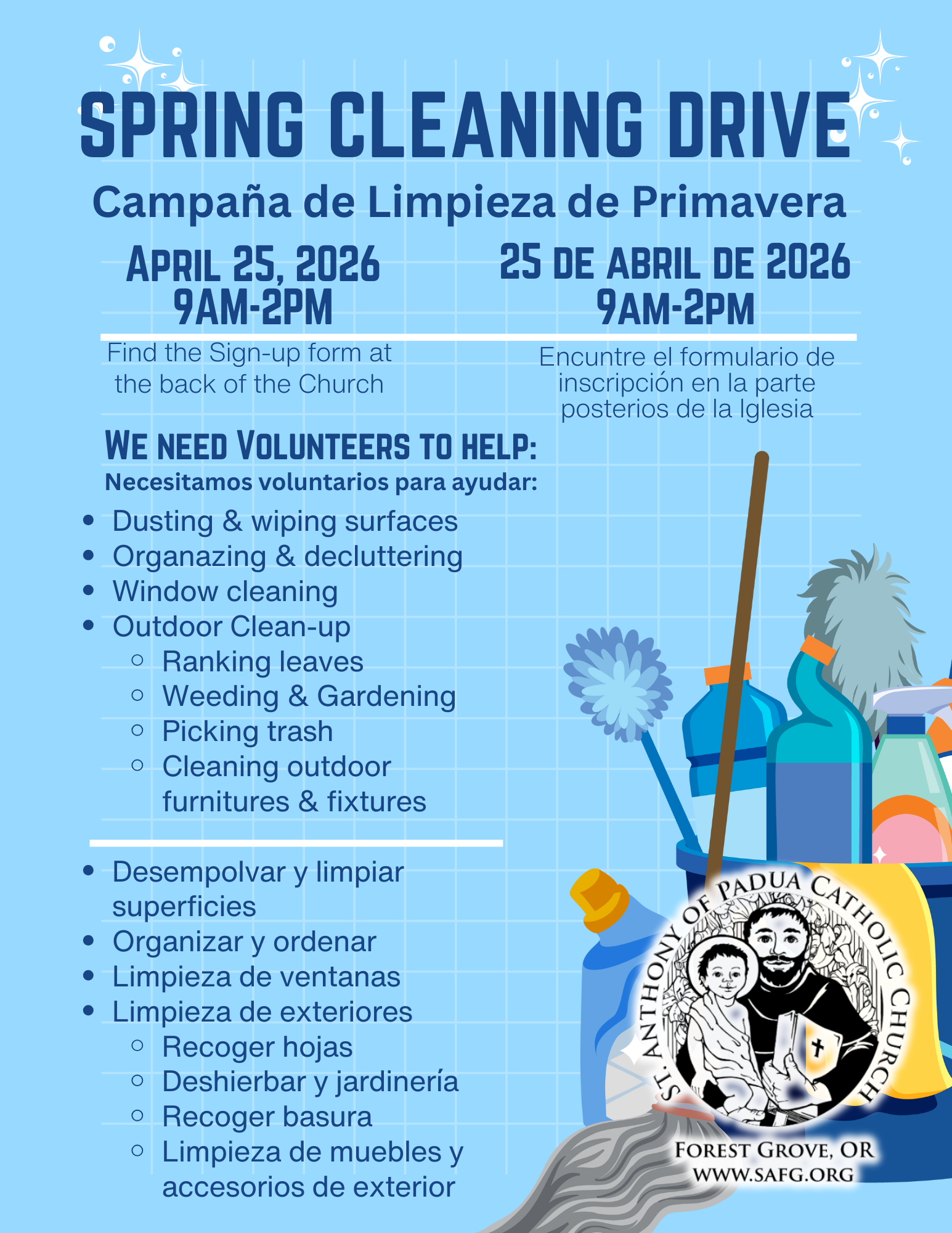 Sunday 9:30am (English), 12:00 pm (Español)
